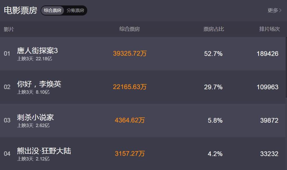 对于陈思诚来说,也许唐探3的总票房会让他和投资方是相当满意的。