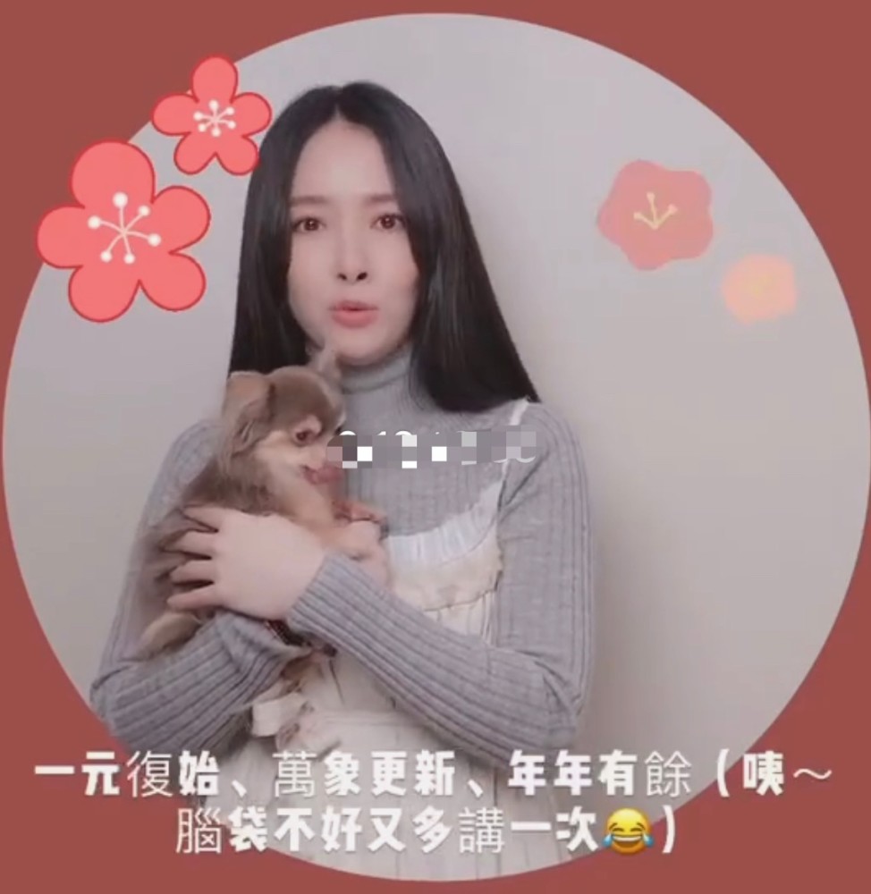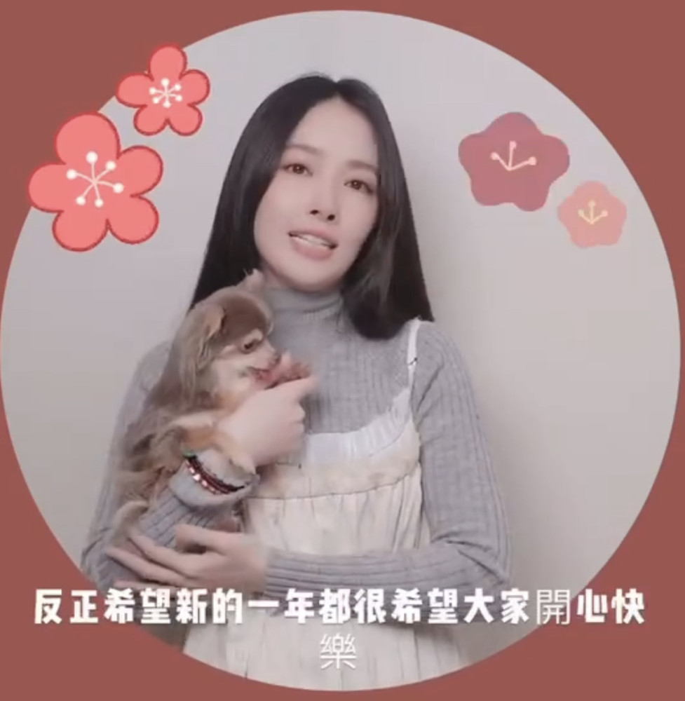 郭碧婷抱着爱宠finfin和粉丝们互动,亲热地说“哈喽,亲爱的粉丝们,新的一年除旧岁,也希望大家新的一年平平安安、开开心心、快快乐乐、大吉大利、年年有余、步步高升、事事如意、心想事成、万事如意、一元复始、万象更新、年年有余”,然后对着镜头开心的笑了笑。