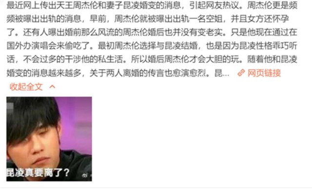 再加上前段时间昆凌疑似内涵周杰伦前女友侯佩岑的行为,让两人原本甜蜜的感情似乎出现了一丝裂痕。周杰伦和昆凌结婚以后就变得居家了很多,女儿出生以后,周杰伦又从宠妻狂魔变成了女儿奴。周杰伦也经常晒出一家人的照片,想不到两人多年的感情就这样结束了,有消息称周杰伦还承认了自己与昆凌分开了,并且说“心都走了”。一时间,关于周杰伦和昆凌离婚的传言也传得沸沸扬扬。