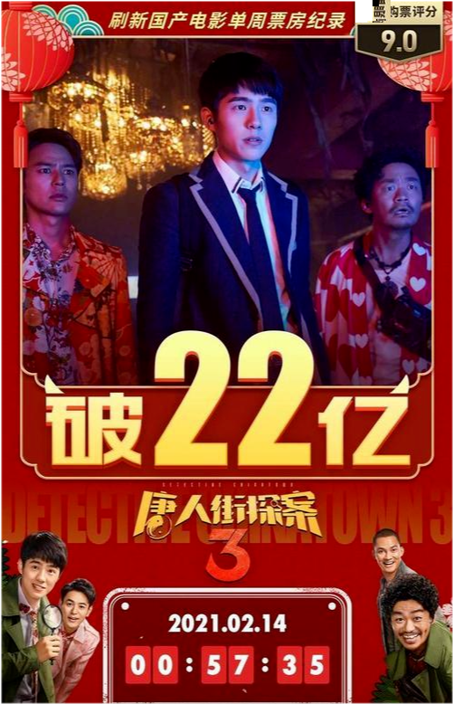 大年初一当日,大众期待已久的《唐人街探案3》终于上映了。与之同时上映的还有《你好,李焕英》《侍神令》等等六部口碑与品质都不错的片子。但即便在竞争如此激烈的情况之下,《唐人街探案3》还是一骑绝尘,上映第三日就斩获了22亿票房。