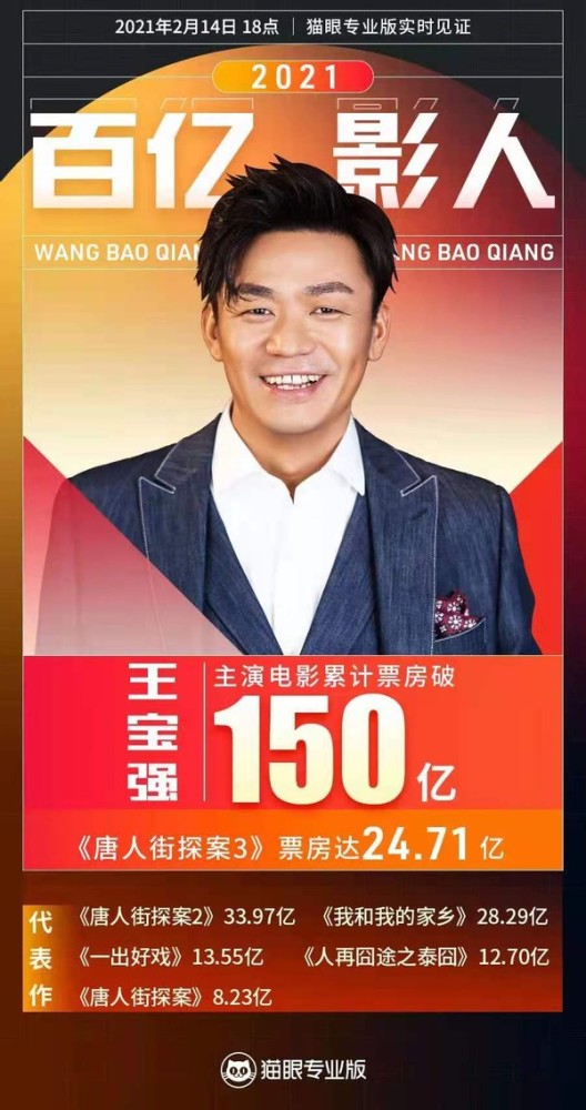 2月14日,据猫眼电影专业版显示,电影《唐人街探案3》票房已经高达25亿。主演