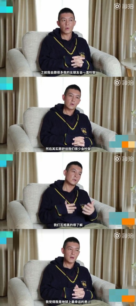 陈冠希坦言和过去的其他女朋友在一路总会争吵,但是和秦舒培不会,而且他们互相都很了解,而自己是这个世界上最幸运的男人。