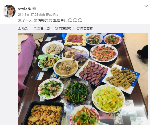 有向太帮忙看孩子,郭碧婷也会经常回娘家看望爸爸,年前的时候向佐就陪着郭碧婷回了娘家,而大年初二的时候,郭碧婷再次带着向佐和孩子回娘家吃团圆饭。郭爸爸忙活了一天,做了14菜1汤招待女婿,真是满满一大桌,看上去
