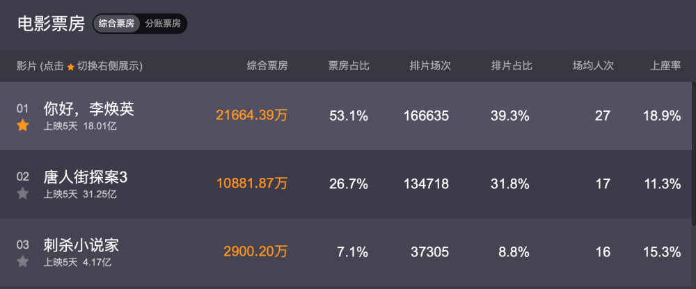 值得注意的是,这是自春节档电影上映以来,《你好,李焕英》日排片占比首次超过《唐人街探案3》。