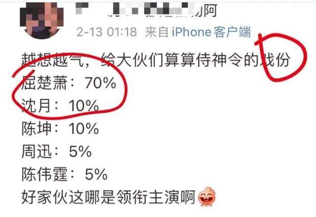 若是按照宣传的番位顺序看,陈坤和周迅是妥妥的男女主,戏份也应该紧紧围绕两人。实际上,并非如此。有网友统计了戏份,发现屈楚萧占比百分之七十,陈坤只有百分之十,而周迅更少,也因此还顺势助屈楚萧戏份登上热搜。