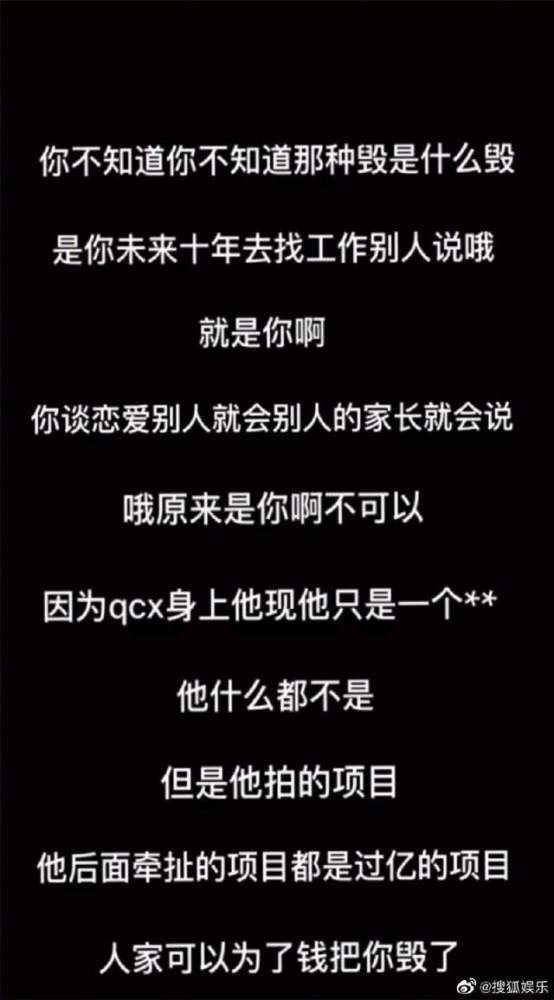 而在1月的时候,疑似屈楚萧前女友,微博名“我也不知道叫甚么了”的博主,还在微博上晒出了跟屈楚萧经纪人的对话录音,经纪人全程威胁女方。