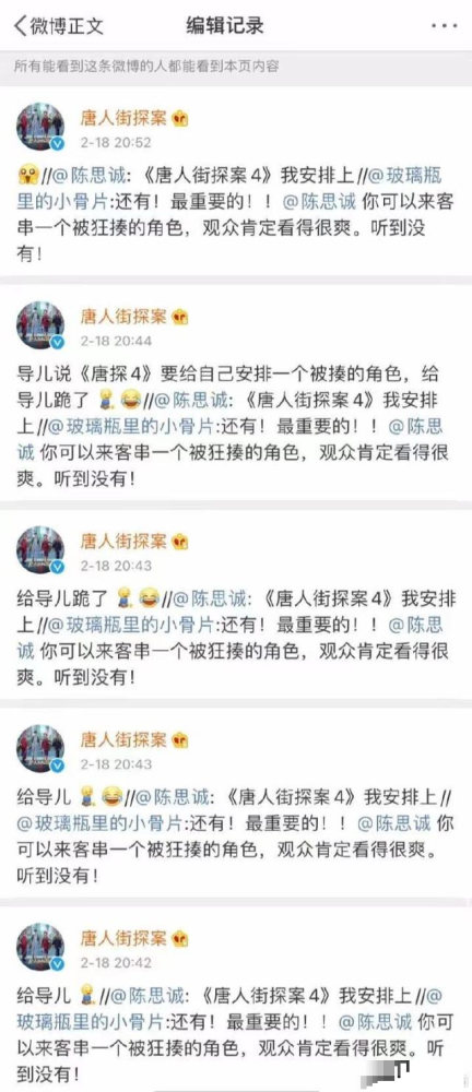 也许事出突然,官微转发陈思诚回应的时候,修改了五次,可以想象小编当时有多害怕: