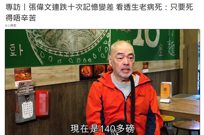 张伟文还坦言:现在的自己,已经看淡生死,也不怕死,但怕死得痛苦!