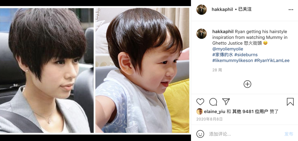 去年8月份,胡杏儿的老公李乘德也在IG上也分享过妻儿的侧颜对比照,还称Ryan的发型灵感来源于妈妈。