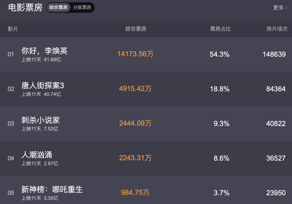 电影《唐人街探案3》在预售票房10亿的情况下最终输给了后来者居上的《你好,李焕英》。这场春节档的交锋完美地呈现了这几年电影行业发展的态势。