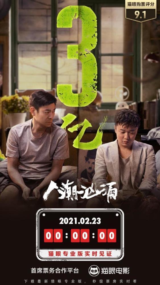 据@猫眼电影 微博消息,据猫眼专业版数据显示,由饶晓志执导,刘德华、肖央、万茜领衔主演的电影《人潮澎湃》票房正式破3亿。