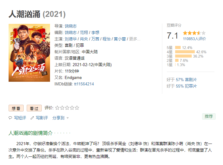 于是问题来了,《人潮汹涌》真的烂到了这种水平?只有《唐人街探案3》的十三分之一?