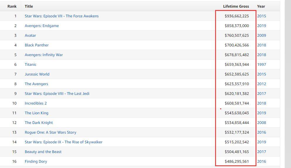 即使是现在,在北美老家票房能破2亿美元都算是非常优异的成就,3亿的话应该是大爆,4亿是超爆,5、6亿则是传奇,7亿以上则必须是一些特殊的现象级电影才能做到。