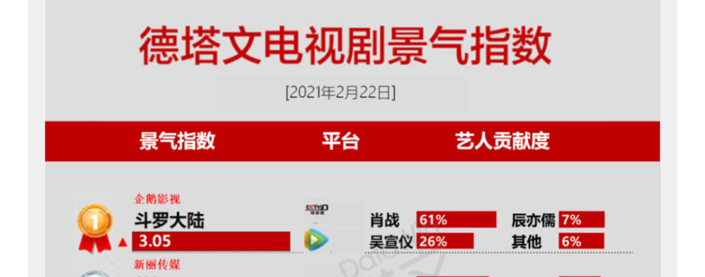 2.另外从德塔文斗罗大陆电视剧个人贡献度可以看出肖战本人完全有能力可以抗剧。