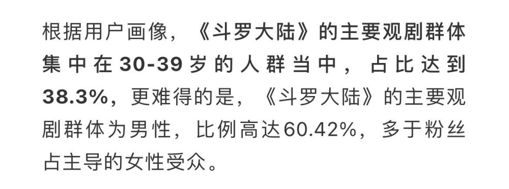 3.根据数据统计,斗罗大陆剧版剧粉多为男性,可以看出该剧挺好的看的,各个平台数据也能很好证明。