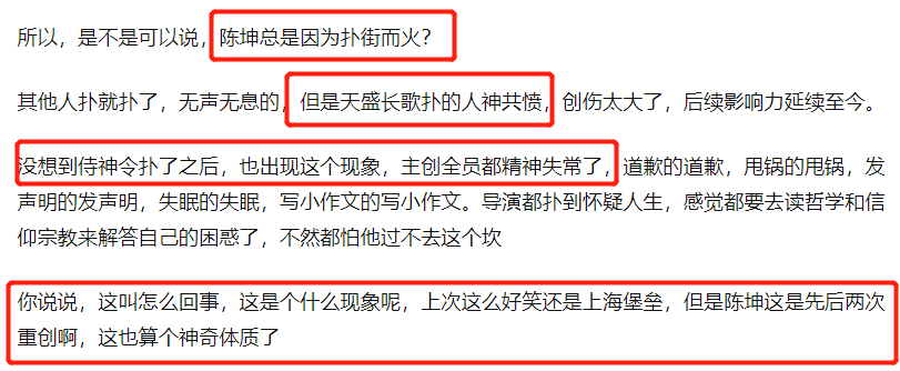 网友调侃,陈坤是否是因为扑街而火啊?甚至扑出“哲学感”了。