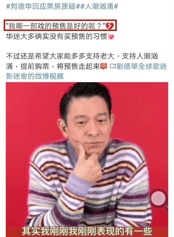 序言:春节档电影大战正式拉开大幕之前,《人潮汹涌》的预售很低,导演饶晓志非常焦急。监制兼主演刘德华安慰饶晓志:“我哪一部戏的预售是好的呢?”春节档7部电影正式上映以后,《人潮汹涌》是第一个掉队的。