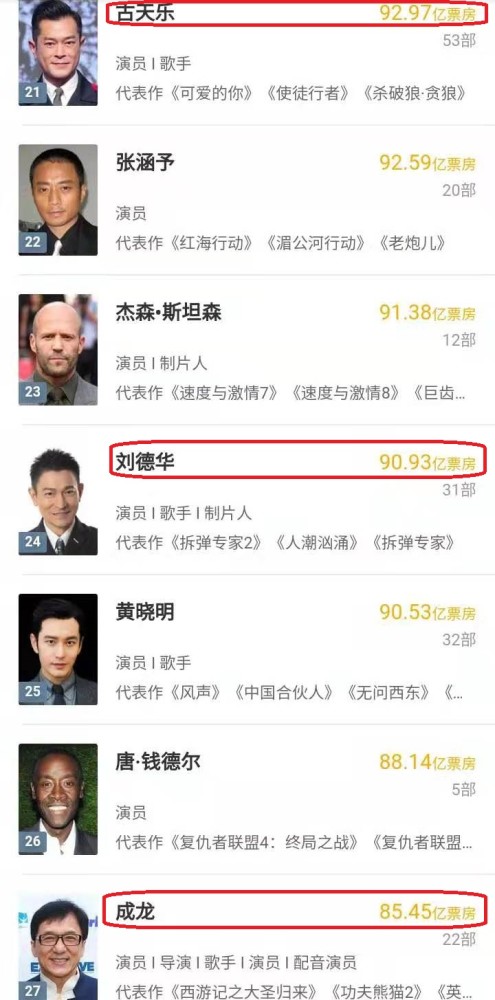 只可惜,刘德华累计票房只有90.93亿,《人潮汹涌》虽然逆袭了,但预估票房只是5.57亿而已。而古天乐目前是累计票房最高的香港演员,达到了92.97亿。古天乐的存货比刘德华多,随便上映一部,古天乐就有可能成为第一个票房100亿的香港演员。
