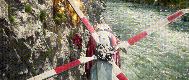 第二幕的激流当中救卡车司机。特遣队用飞机螺旋桨吹灭火焰挺酷。