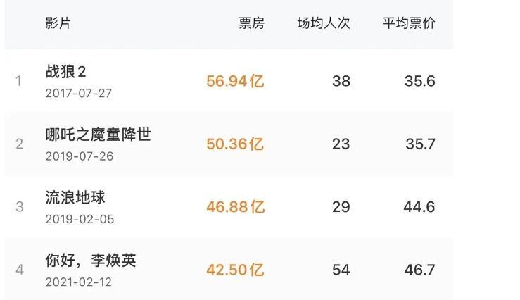 更让人玩味的是,李焕英已经来到了国内历史票房榜的第四位,而且马上就要超越流浪地球46亿的票房了