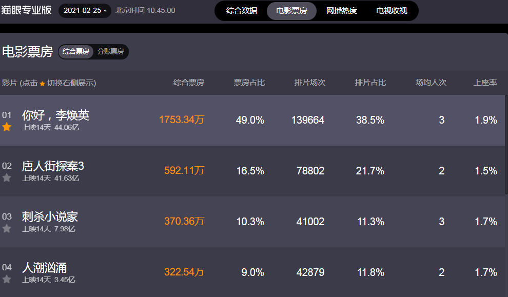 排片占比升至第3,上座率逆袭李焕英,《人潮汹涌》要翻身了