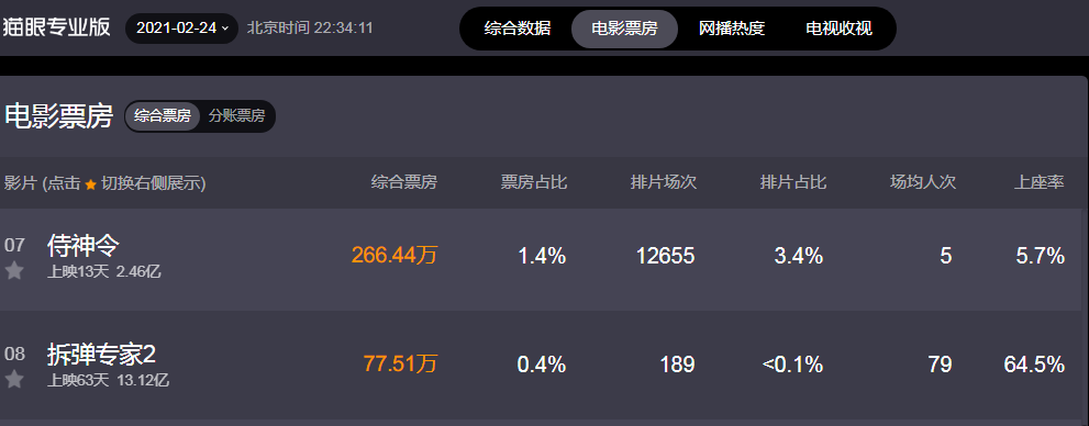 小编还发现刘德华另一部电影《拆弹专家2》的一个有趣现象,大半夜的,这部上映了两个月以上的影片的上座率竟然达到了64.5%!这才是最高上座率,这几乎要坐满了呀。可见华迷是真的很喜欢老大呀。