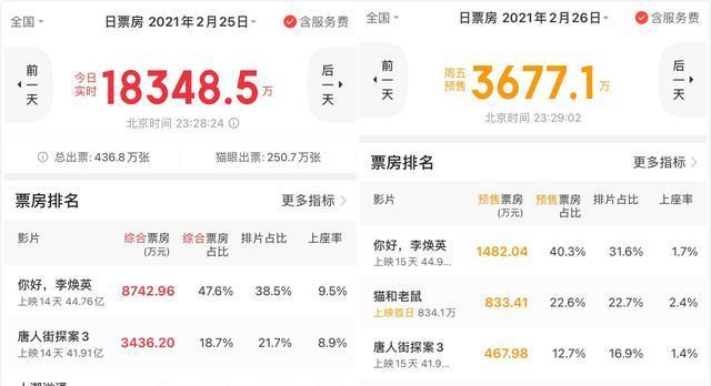 但是,明天,也就是2月26日,因为一部新片的上映,包括《李焕英》《唐探3》《人潮汹涌》在内的所有正映影片的排片率,都将有所降落。