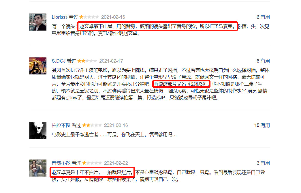 当时宣传的所谓《战狼3》也成了网友的吐槽焦点,有观众怒斥《反击》是低配版战狼,比战狼烂了10倍。