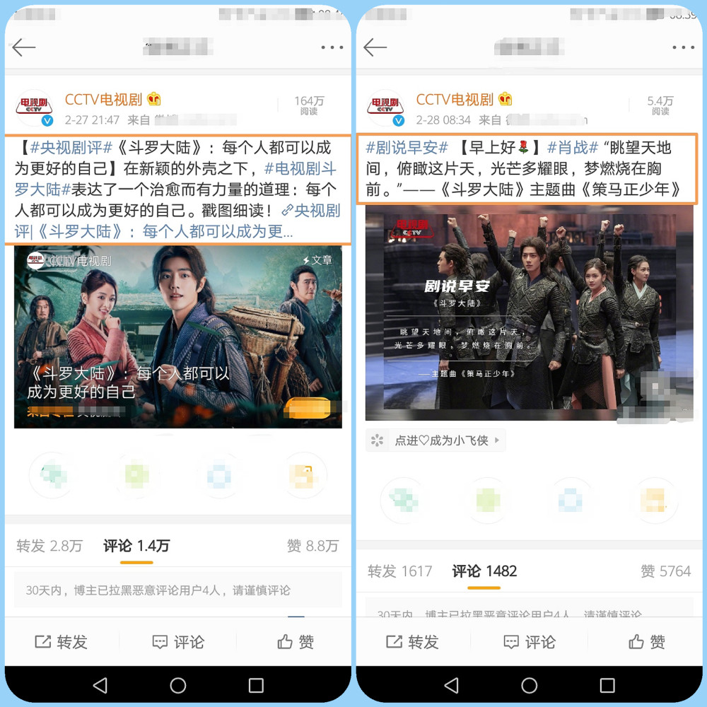 其实,除了媒体人以外,CCTV电视剧官方平台的两条动态早就表明立场。