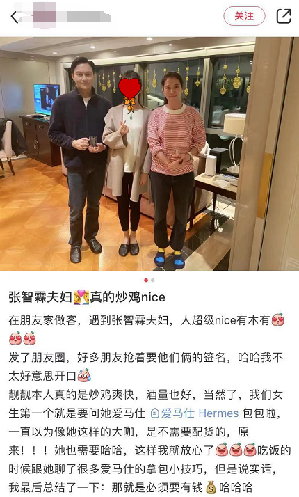 3月1日晚,有网友在社交平台晒出偶遇张智霖夫妇的合照。她还写道:到朋友家做客,遇到张智霖夫妇,人超级nice。尤其是对靓靓赞不停口,大赞袁咏仪本人超级爽快,酒量也好。