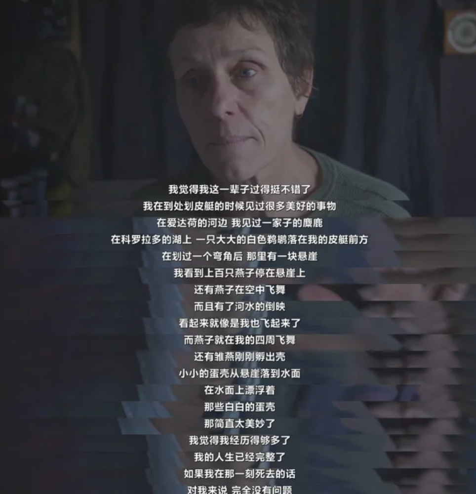 《无依之地》中,弗恩追求自由,所以就要忍受孤独、穷困和一场又一场分离。 同样,想把青春和生命祭奠给电影的赵婷也经历了投资被拒、设备被抢、被否定被打击等等挫折,才华才终于得到肯定,个中酸楚和喜悦恐怕只有追过梦的人才会懂。 目前,《无依之地》已经确定在国内上映,赵婷给中国影迷录了VCR: