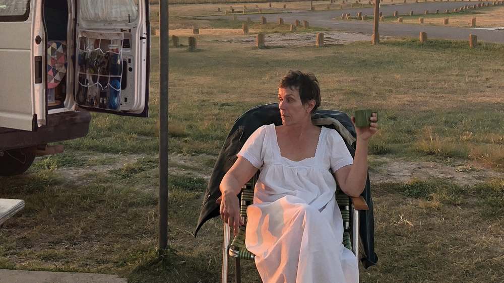 美国和有些欧洲国家一向在标榜自己的自由,《无依之地》能拿下这么多奖项,与这个也有关系。影片讲述的是一个老妇女死了老公,没有儿女无依无靠,没有存款,又一向在想念老公走不出来。因而就开始了流浪,一边打姑且工赚钱,一边住在房车里,到处游荡。在路上遇到了许多同类人,带出了许多的故事和情感。