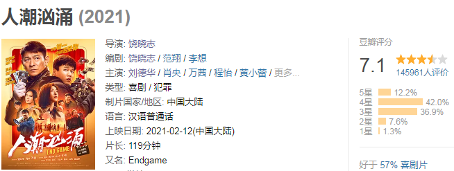 瓣高评分,可以说网友们对这部《人潮汹涌》的评价仅次于春节档最受好评的电影《你好,李焕英》,但是就因为档期实在是太过拥挤,低排片直接挤压了电影的生存空间,才会导致这部本应该大放异彩的电影在上映前三日都基本没有被观众注意。