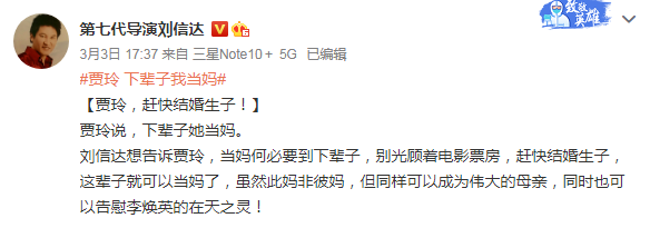 刘信达说道:“贾玲,赶快结婚生子!贾玲说,下辈子她当妈。刘信达想告诉贾玲,当妈何必要到下辈子,别光顾着电影票房,赶快结婚生子,这辈子就能够当妈了,虽然此妈非彼妈,但同样可以成为伟大的母亲,同时也能够告慰李焕英的在天之灵!”接着,刘信达补充道:“如果贾玲一天到晚只想着自己的票房,连恋爱都不谈,连结婚的事情都不放在心上,那么就算你好李焕英的票房到了50亿,又有什么用呢?因为她始终是一个孤苦伶仃,始终活得不快乐,永远也比不上刘信达这版逍遥自在!我的电影一般人看不懂,他们欣赏不来,就不是拍给俗人看的,50亿票房没什么了不得的,等大家审美提高了,会有无数人来看我的电影。”
