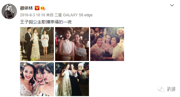 16年8月林心如霍建华的婚礼上,蔡依林和侯佩岑被邱黎宽拉到一路世纪同框了一把。