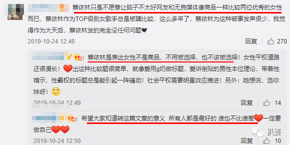 蔡依林转发的目的是为了女性平权,呼吁大家不要把女性当成商品一样比较和被选择,希望每小我都能被爱被尊重。。。