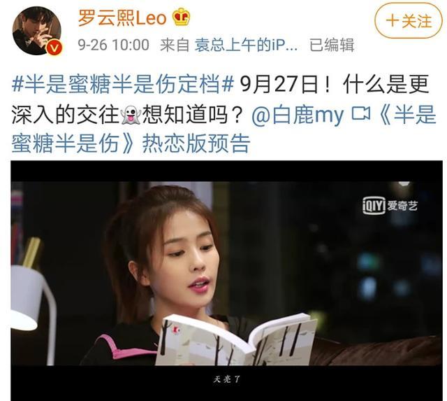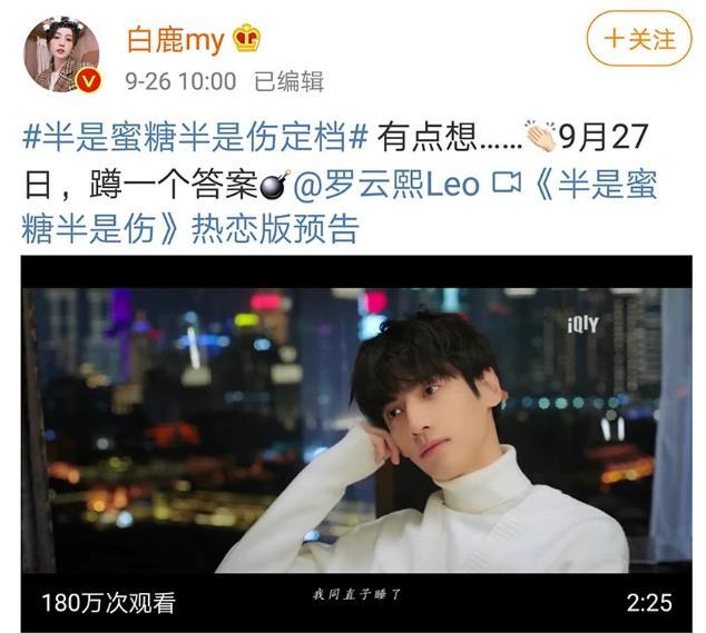《半是蜜糖》定档,白鹿罗云熙演出甜蜜虐恋