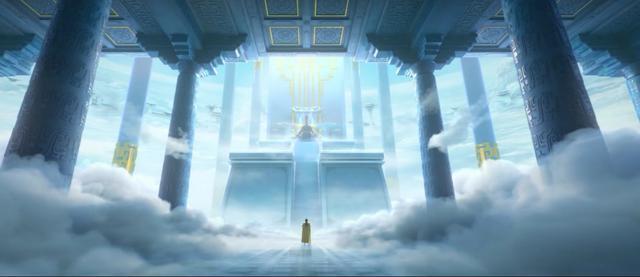 在概念预告中,二郎神杨戬是一个少年模样,额头上有金色的第三只天眼,他站在金碧辉煌的凌霄大殿中,大殿云雾缭绕,神圣辉煌,让人不由感叹场景制作之精良。