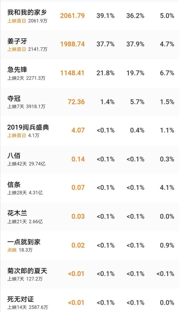 据统计目前还有《姜子牙》、《急先锋》、《我和我的家乡》等电影目前的预售票房也已经超过了千万元。《我和我的家乡》和去年国庆档的《我和我的祖国》一样也还是献礼片。在去年国庆档的时候《我和我的祖国》是票房冠军,而作为姊妹片的《我和我的家乡》是否也会成为这次的票房冠军呢。按照目前的情况看,这部电影还是很有可能在这次的国庆档中夺魁。