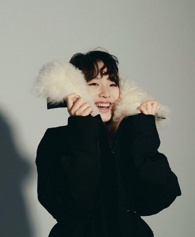 Elly将毛茸茸的衣领裹着自己的两颊,笑出了一排整齐的贝齿。Elly一向有一个明星梦,想要和阿姨大s那样主演偶像剧,或许这是她的第一步!