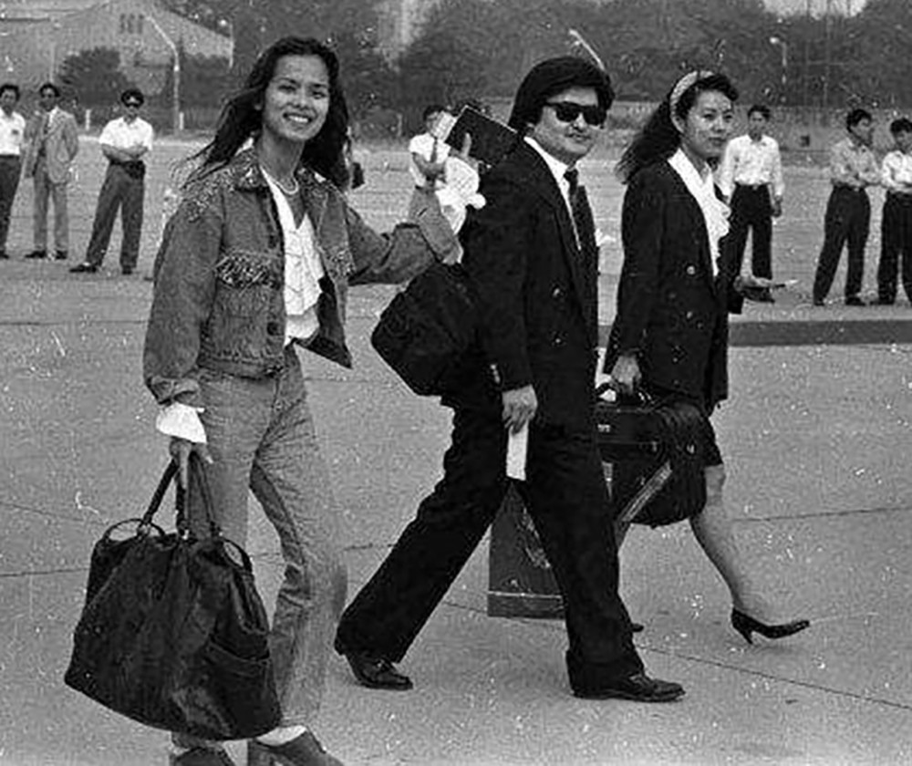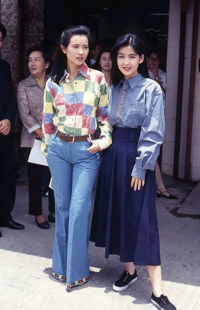 1992年《大时代》拍摄现场 ,香港演员蓝洁瑛与周慧敏合影。
