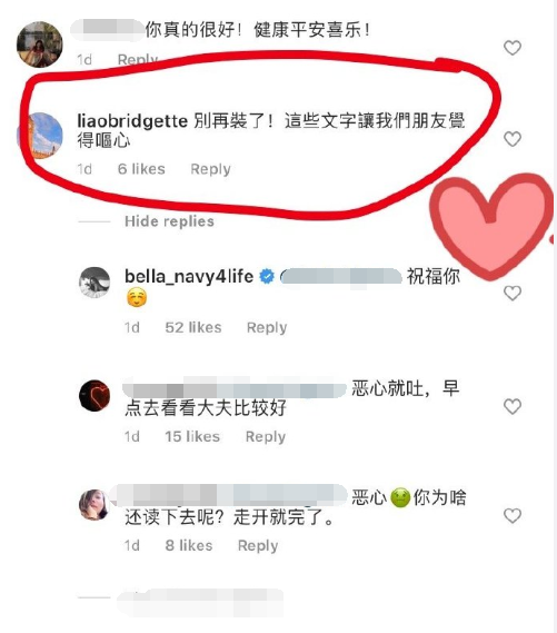 但是在这条动态下,依旧有网友口不留情,回复她“别再装了,这些文字让人觉得呕心”,然而bella也公开回应了这位网友,她的态度很友好,说“谢谢你”,还给了一个微笑的表情,不能不说bella的情商蛮高的,能够感受到自从她说要打开心来生活,她活得越来越通透洒脱了,对这些恶意评论也已经很淡然了。
