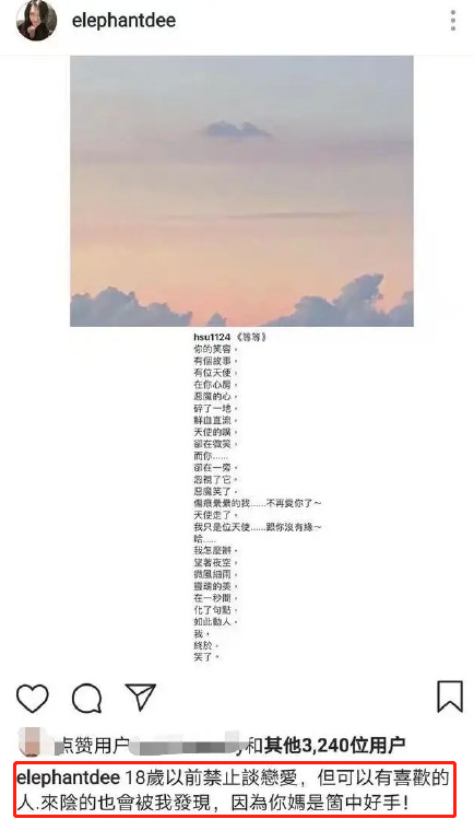 作为妈妈的小S还很关心女儿们感情状况,她曾转发过二女儿许韶恩写的一首情诗,还告诫许韶恩不要偷偷谈恋爱,因为自己是'抓早恋'的个中好手。