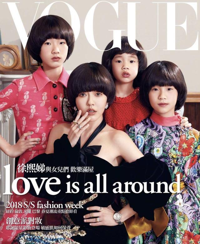 最近,小S便带着三个女儿一路接受邀请拍杂志封面,母女四人穿同款衣服,扎着一样的羊角辫,全家一路演出高冷厌世脸,镜头感超赞。