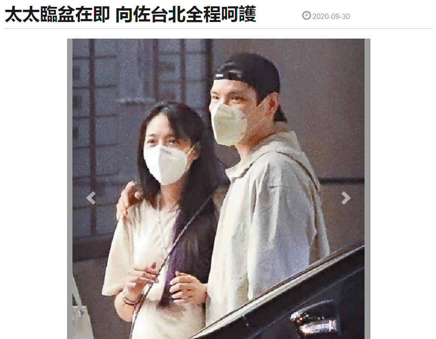 出于对郭碧婷的保护,每次郭碧婷至亲更新动态都没有曝光她的孕肚照,被外界多次猜测是否是已经生了宝宝,不过9月30日,台媒曝光了郭碧婷近况,同时也拍摄到郭碧婷又大又圆的肚子,老公向佐贴心陪伴在身边,夫妇俩现身台北街头秀足了恩爱。