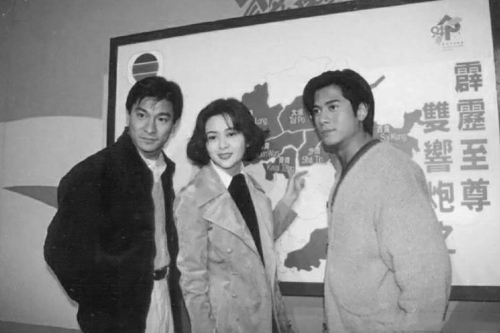 张曼玉、梁家辉、林青霞,《追男仔》宣传期间的珍贵合影。