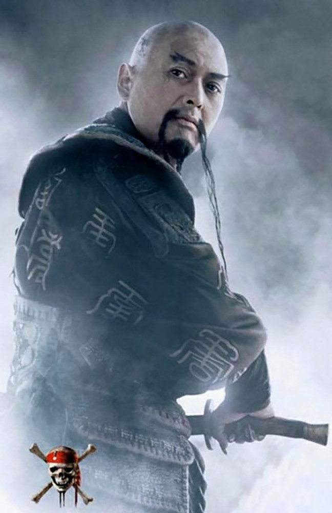 图为出演《加勒比海盗》时的周润发,饰演了一个东方海盗头子。在这部剧里,发哥饰演的是新加坡的一个大海盗:啸风,新加坡海盗之王,统领中国海盗船“女皇号”(The Empress)。虽然在剧中发哥最终因为被火炮击中去领盒饭了,但是整部海盗3最大的看点还是他精湛的演技,充满杀气的眼神让我有种他不妥海盗都可惜的感觉。