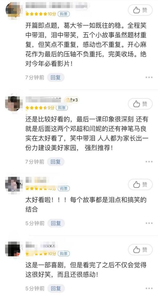 因为电影演员导演的阵容强大,故事贴近生活,网友对电影的评价也很高,评分9.2,位居国庆档第一。有很多网友都说看电影时笑中带泪,虽然是一部喜剧,但却能让泪点与笑点结合,实属不易。