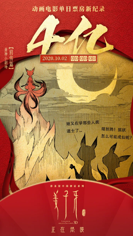虽然它算是续作——作为《哪吒之魔童降世》后光线彩条屋影业“中国神话系列”第二部作品,却轻松刷新了由《哪吒》保持的1.44亿中国影史动画电影首日票房纪录,更超过了《哪吒》于2019年8月4日创下的3.42亿中国动画电影单日票房纪录。