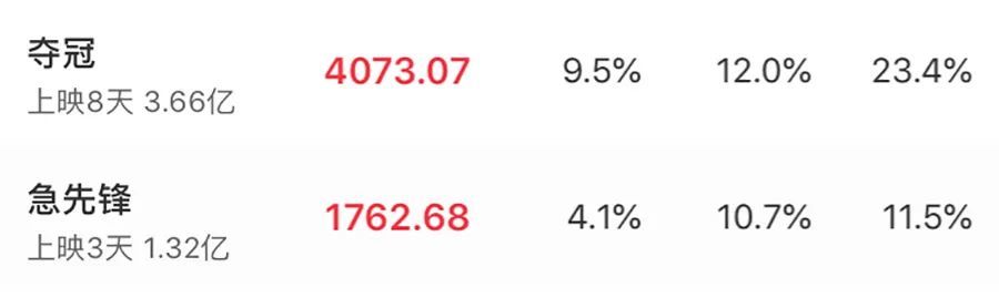 然而,高投资却换不来高票房,由于受《姜子牙》和《我和我的家乡》上映的冲击,加上口碑不如理想(豆瓣评分只有5分),在双重夹击之下,排片率从前一天19%下调到10%,比先上映5天的《夺冠》还要少,最新票房占比更跌至4%左右。